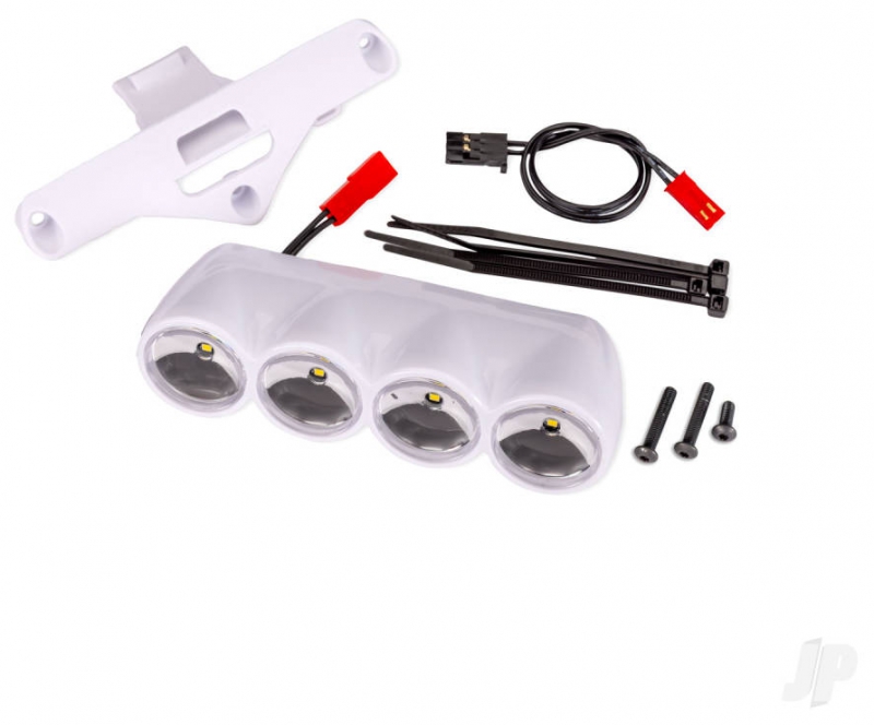 Assembled white front LED light pod & harness for 10812-series Ford RS200 bodies. Comes complete and ready to mount with included LED lights.