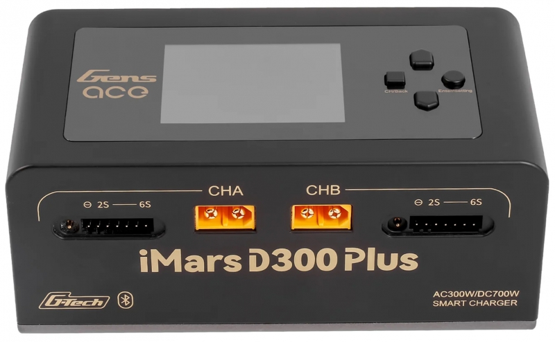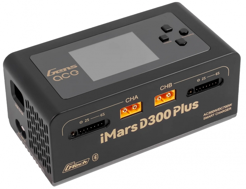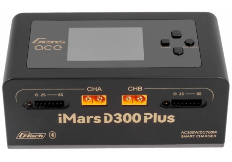 The Gens Ace iMars D300 Plus is a new dual-channel smart charger based on the D300. It keeps the core features of the G-Tech system and adds Bluetooth remote control. RC enthusiasts can now use the Gens Ace app to manage and view more real-time data and historical records, making the experience simpler, more efficient, and safer.