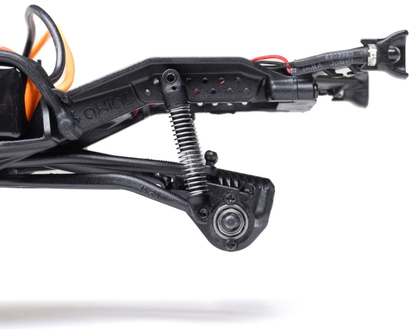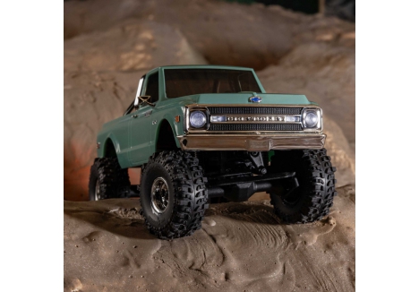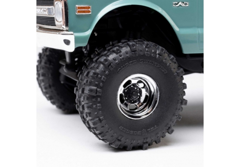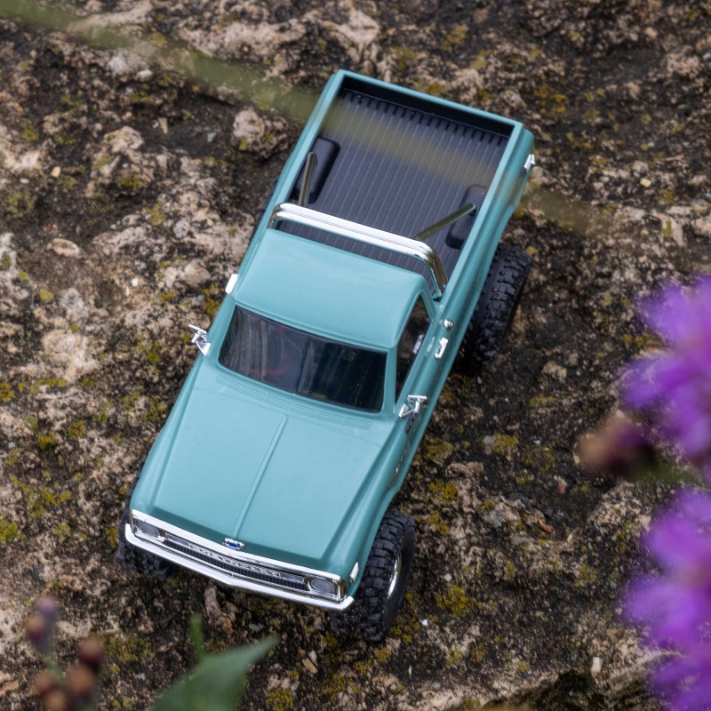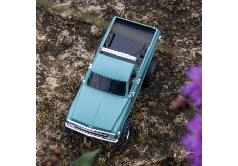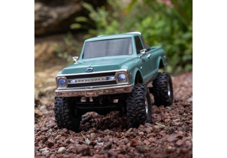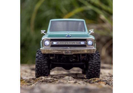 The Chevy K10 includes an angled skid plate to let you easily slide over challenging obstacles - a feature usually found only in competition crawlers. Ramped axle housings and high clearance links also help to avoid dragging and hangups. Climbing stability on the rocks gets a boost from the chassis’ forward weight bias. Other performance features include damped 25mm shocks, full ball bearings, a powerful Axial 65T motor, and dependable Spektrum electronics that are mounted low in the chassis for the optimal center of gravity.