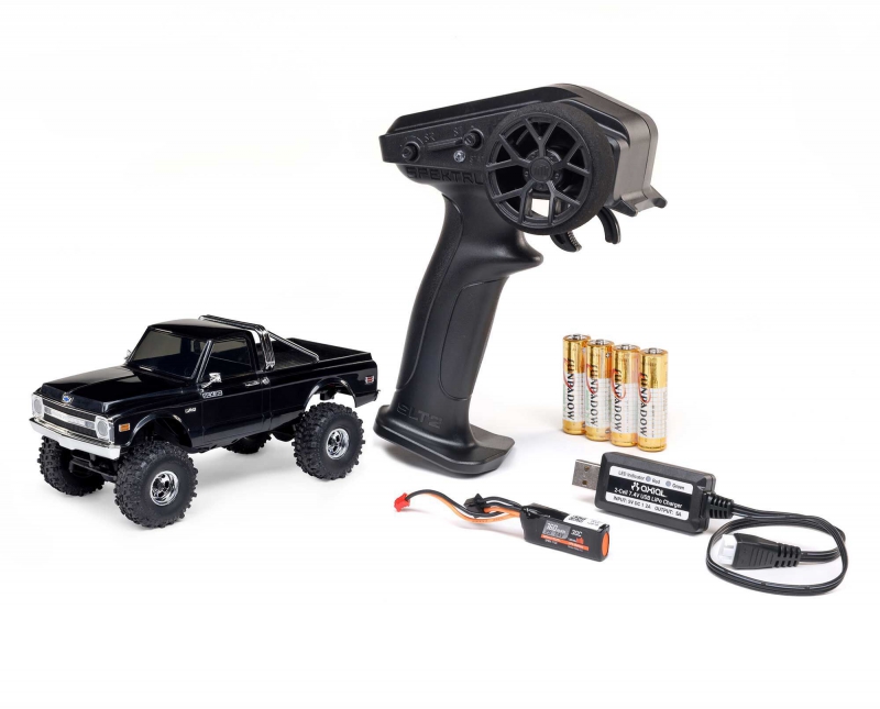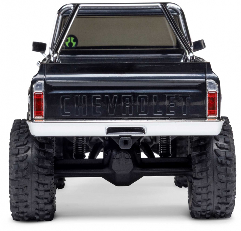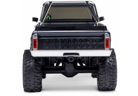 The Chevy K10 includes an angled skid plate to let you easily slide over challenging obstacles - a feature usually found only in competition crawlers. Ramped axle housings and high clearance links also help to avoid dragging and hangups. Climbing stability on the rocks gets a boost from the chassis’ forward weight bias. Other performance features include damped 25mm shocks, full ball bearings, a powerful Axial 65T motor, and dependable Spektrum electronics that are mounted low in the chassis for the optimal center of gravity.