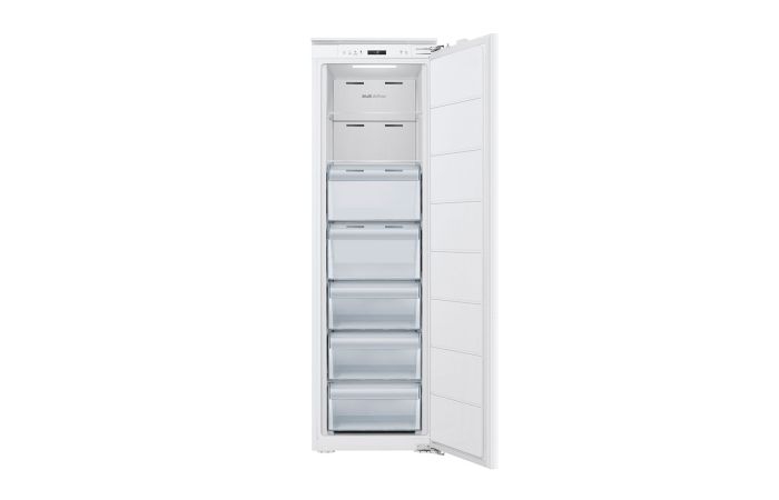 The Teknix BITHTZFF integrated tall freezer in a clean white finish is designed for households that need generous frozen storage, reliable frost free performance, and a streamlined built-in installation. With a spacious 235-litre capacity, a fixed hinge system, electronic controls, and a quiet 35 dB operating noise level, the Teknix BITHTZFF integrated tall freezer offers a practical and efficient solution for modern kitchens. Every feature has been engineered to support everyday convenience, from the frost free system that eliminates manual defrosting to the reversible door that allows flexible placement within fitted cabinetry. This long-form description explores each feature in depth, helping customers understand how the Teknix BITHTZFF integrated tall freezer delivers dependable performance and user-friendly functionality.