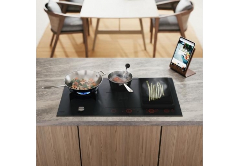 ASKO HIG89524MGB1 induction and gas hob brings induction speed together with gas tradition in a matt black, Scandinavian-inspired design. ASKO HIG89524MGB1 induction and gas hob combines a glass ceramic cooktop surface with advanced induction technology and a dedicated Fusion Volcano Wok burner concept for high-heat wok cooking. ASKO HIG89524MGB1 induction and gas hob is designed for cooks who want precise control for everyday meals, ambitious weekend cooking, and wok-focused techniques, while also supporting connected monitoring and guided temperature cooking.