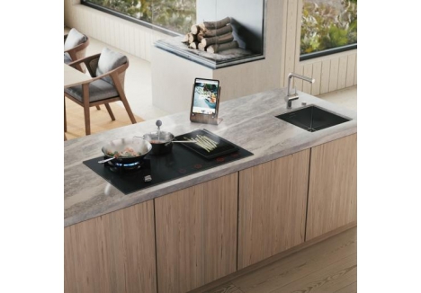 ASKO induction and gas combination hob system extends temperature control through Bluetooth communication between the hob and compatible accessories. Manufacturer information describes Celsius Cooking accessories, including a Chef’s Pot and Frying Pan available separately, designed to measure temperature and communicate with the hob. The induction system can then regulate temperature automatically by communicating with the pan, pot, and probe via Bluetooth. This connected ecosystem supports a more controlled cooking workflow for dishes that benefit from accurate heat management, while keeping the core experience centred on the hob as the control point.