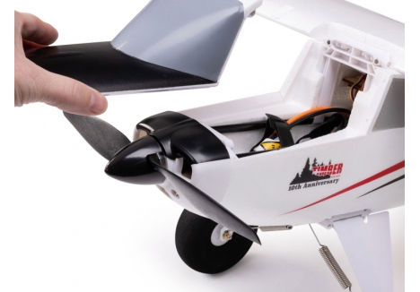 The E-flite Timber 1.5m 10th Anniversary Special Edition celebrates the release of one of the most popular and best-selling RC aircraft of all time! All the popular features from the original Timber 1.5m are there: shock-absorbing landing gear with oversized, tundra-style wheels; an optional-use float set and leading edge slats; functional slotted flaps; and an LED lighting system with landing, navigation, and strobe lights. So are the enhancements that gave the Turbo Timber 1.5m more performance and capabilities, including a more powerful 3S and 4S 2200–5000mAh compatible power system, and a stiffer wing. Now this Special Edition adds a top-mounted hatch for faster, easier battery changes, plus combined connectors for simpler wing installation and removal. Strengthened landing gear mounts, along with heavier-duty springs, improve the model's durability and STOL capability when flying from rough terrain. Plus, it also features the iconic short-nose and trim scheme design for a now "classic" look!