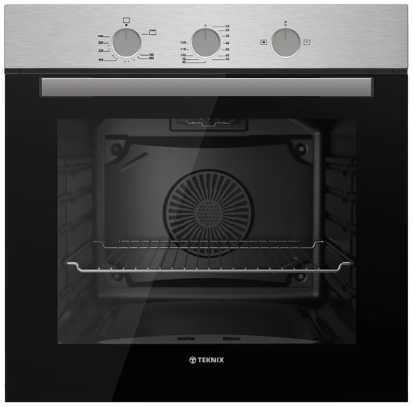 The Teknix BITK263GSX fan oven 63L capacity is a central strength of the stainless steel single oven, giving households enough room to handle everything from weeknight dinners to weekend roasts and traybakes. A 63 litre cavity allows larger dishes, multiple trays or taller cookware to be used without feeling cramped, which is especially useful when cooking for families or entertaining guests. The fan oven function circulates hot air around the cavity, helping to reduce hot spots and support more even cooking across different shelf positions. This combination of generous capacity and fan assistance makes the stainless steel single oven a strong candidate for anyone seeking the best balance between size and performance in a built-in appliance.