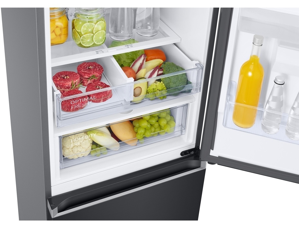 The Samsung RB38C636DB1/EU is a high capacity Series 6 fridge freezer engineered to deliver exceptional cooling performance, modern styling and everyday convenience. Finished in premium Black Steel, it brings a sleek, contemporary look to any kitchen while offering a generous internal layout designed for busy households.