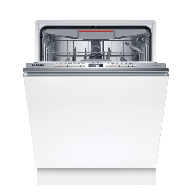Thanks to VarioFlex baskets and the Rackmatic adjustable upper rack, you can easily adapt the internal space to accommodate a variety of dishes and cookware. This Bosch 14 place setting dishwasher includes a third-level cutlery drawer, flip tines, and cup racks for effortless organisation. Whether you’re loading baking trays or wine glasses, this machine adapts to your needs — making it an affordable full size built-in dishwasher with smart drying and flexible baskets.