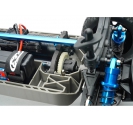 The Apache’s high ground clearance moulded tub chassis is now reinforced front-to-rear with an aluminium T-brace for near-zero chassis flex, while aluminium skid plates and updated moulded bumpers add extra protection for hard off-road running. Long-travel suspension has been strengthened with revised arms and a new rear upper link, supported by blue anodised aluminium oil-filled shocks at each corner.