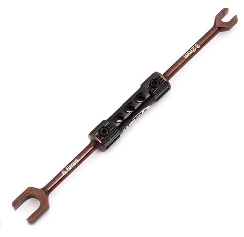 Team Associated's new Factory Team Dual Turnbuckle Wrench is designed for both 1:10 (3.2mm) and 1:8 (5.5mm) scale turnbuckles. This wrench's long reach allows rotation of the turnbuckle in tight areas and provides extra leverage.