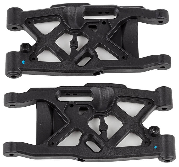 Team Associated developed a new Medium composite arm material for 1:8 off-road racing. Compared to the RC8B4 kit Hard material, the Medium arms have reduced fiber content which offers several improvements. Medium arms are marked with a blue dot on all parts.