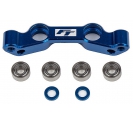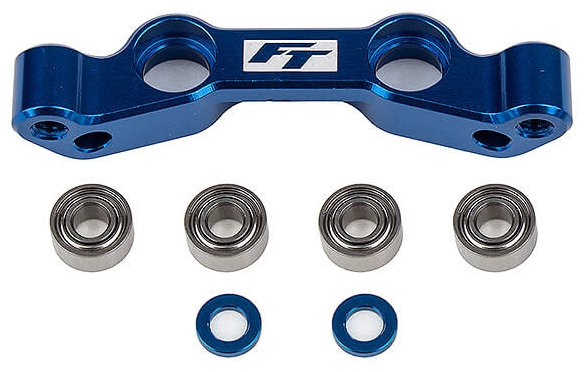 Factory Team produced a durable and high-performance steering rack upgrade for the RC10B6.4 buggy line. Machined from billet aluminum, the new design utilizes a clamping "crush tube" style ball bearing pivot that minimizes play in the steering assembly. The result is a more durable and reactive steering assembly that will allow drivers to tune the steering system responsiveness.