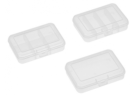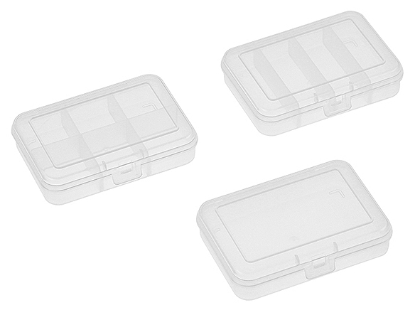 Very handy and useful box for parts storage. Tough, durable, translucent plastic box with pre-set compartments. Easy, quick-access storage for small parts