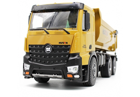 The work horse of the con-struction site, this new 10 function heavy-duty tipper R/C truck from Huina fea-tures diecast metal cab and skip assembly. Use alongside Huina’s other full diecast R/C models CY1580 Excavtor and CY1583 Wheel Loader.