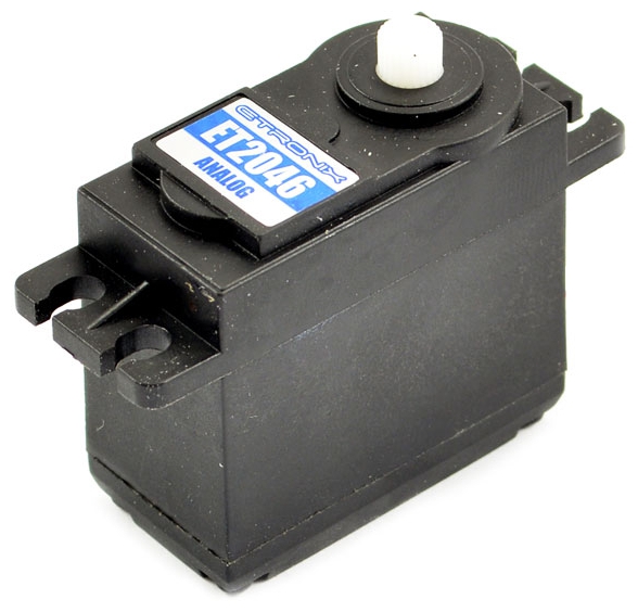 Etronix standard-sized servo. Full selection on servo horns, mounting rubber and hardware included. Spec Check:
