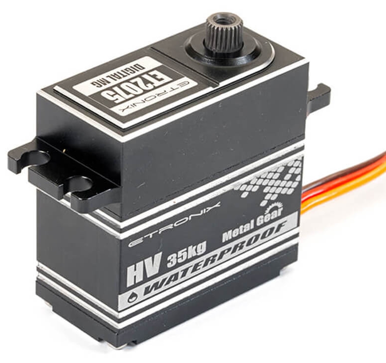 The ET2075 features ball bearing supported metal gears, full aluminium casing for maximum heat reduction, waterproofing and a hefty torque rating of 35kg at 7.4 volts, the ET2075 is the perfect servo choice for all heavy-duty applications such as off-road crawlers, 1/8th buggies and Monster Trucks.