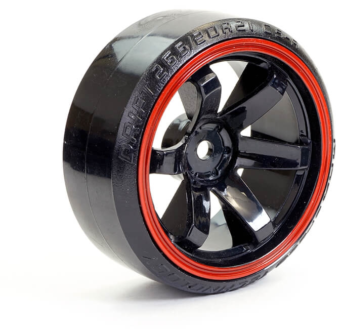 FASTRAX 1/10 STREET/DRIFT TYRE 6-SPOKE WHEEL (6MM OFFSET) - BLACK WITH RED TRIM FAST0086BKR