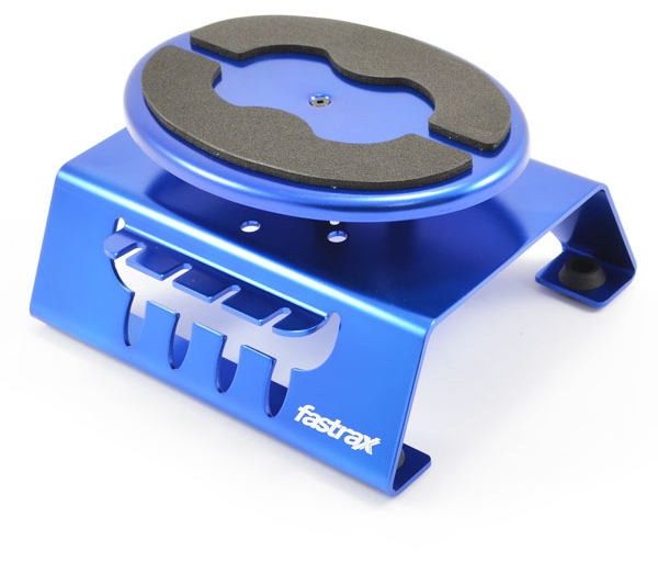 The maintenance stand from Fastrax has a number of neat features that sets it apart from the crowd. The rotating top shelf can be locked in to position alloweing you to perform tasks without the foam padded plate moving.