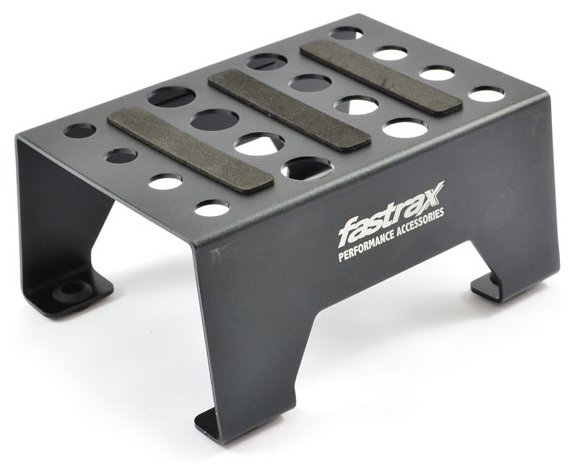 The Fastrax car stand is perfect for performing maintenance on your RC vehicle. The rubber feet hold the stand in place allowing you to work on your 1/10th or 1/8th car while the magnetic side strip can safely hold tools or screws so they are always to hand.