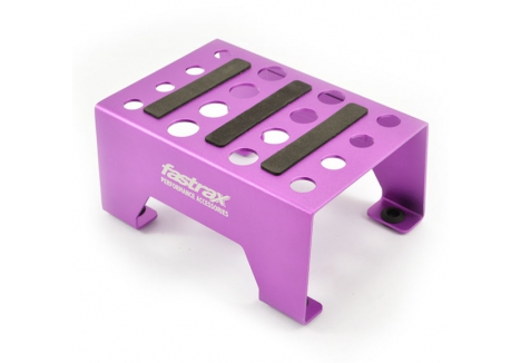 The Fastrax car stand is perfect for performing maintenance on your RC vehicle. The rubber feet hold the stand in place allowing you to work on your 1/10th or 1/8th car while the magnetic side strip can safely hold tools or screws so they are always to hand.