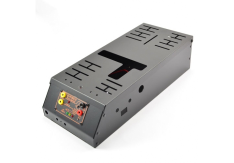 Heavy duty box, features a large 12v motor (as used with hand held units), which can be positioned for almost any configuration chassis, whether the engine is across or in-line. Heavy duty leads for connection to 12v supply. Internal room for small motorcycle 12v battery. Built in power panel for glow start (best used with FAST47). Aluminium folding lid case. Suitable for 1/8th on or off road cars.