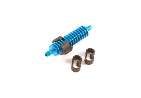 The Exhaust Gas Cooler is mounted between the tuned pipe and the fuel tank and so it will take away some heat from the exhaust gas that goes into the fueltank, lowering the temprature of the fuel and increasing the runtime. Available in a selection of colours and with additional mounting clip and fuel clips it is a must have addition for any serious racer.