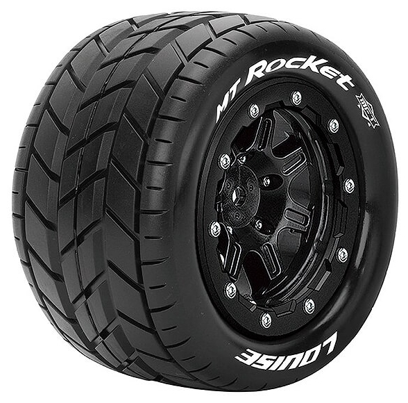Series: MT-RocketCompound: SoftColour: BlackHex Fitment: 17mmFits: T-Maxx Monster TruckTyre Width: 70.2mmTyre Diameter: 134.1mmWheel Offset: 1/2"Includes Insert: YesGlued: Yes
