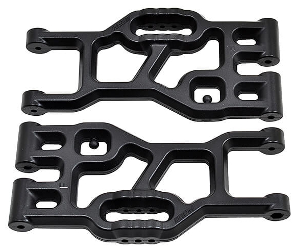 RPM Front A-arms for the Associated Rival MT8 are designed to improve durability over stock A-arms. How did we do it? First, by increasing the amount of material surrounding the inner hinge pins by 7%. We then increased the width of that thicker diameter by nearly 40%! The amount of material at the outer hinge pins was also improved by 28%! We also increased the width there too, by another 9%. The support beams on our A-arms also got beefier. At their thickest, stock a-arms are roughly 1/2” (12.7mm) thick, but taper down on both ends. That amounts to a loss of nearly 30% of their thickness at the outer hinge pins. Not with RPM! Our A-arms are a full 1/2” (12.7mm) over nearly their entire length! We only taper them slightly at the inner hinge pins (.45” or 11.43mm at their narrowest) to match the maximum size allowable of the inner hinge pin bosses. To compensate for that slight taper, we use four massive support beams instead of two, making RPM MT8 A-arms the toughest alternative to stock available! All RPM A-arms are molded in black and blue from our nearly indestructible blend of engineering grade nylons for performance you can trust. Tech Notes: RPM Associated Rival MT8 Front A-arms are sold in pairs. Our A-arms replace the front A-arms from stock Associated RPM25911. Features Sold in pairs Replaces the front A-arms from stock Associated RPM25911 Thicker, tougher and stronger than stock