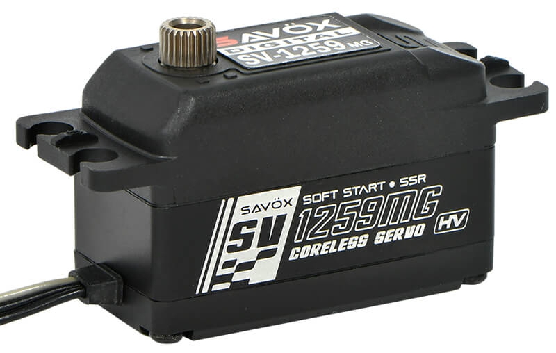The SV1259MG is a high-voltage, low-profile digital servo engineered for performance in tight spaces. With a robust coreless motor and hardened metal gearing, it delivers crisp, responsive control which is ideal for cars or other applications demanding both torque and speed.