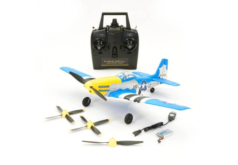 Volantex RC Mini Mustang P-51D 761-5 V2 blue is a small plane with excellent performance. Thanks to the integrated Xpilot gyroscope stabilizer system with a powerful engine, the plane is stable, agile and can perform acrobatics. It is equipped with an aerobatic function, just press one button and pull the stick to easily control Mustang P-51D and perform aerobatics. 3-level flight control assistant (full assisted beginner/partial assisted intermediate/manual control expert) helps beginners learn to fly step by step. Range of control apparatus around 200m, flying time on 1 charge up to 15 minutes.
