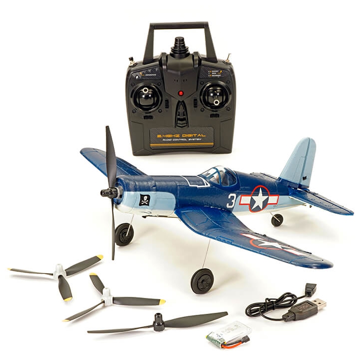 The VolantexRC F4U with gyro is one of the best RC airplane for beginner kids and adult. It come with Aileron, great sport performance, with one key aerobatic, 6-axis gyro, one key u-turn, durable EPP material, propeller saver.