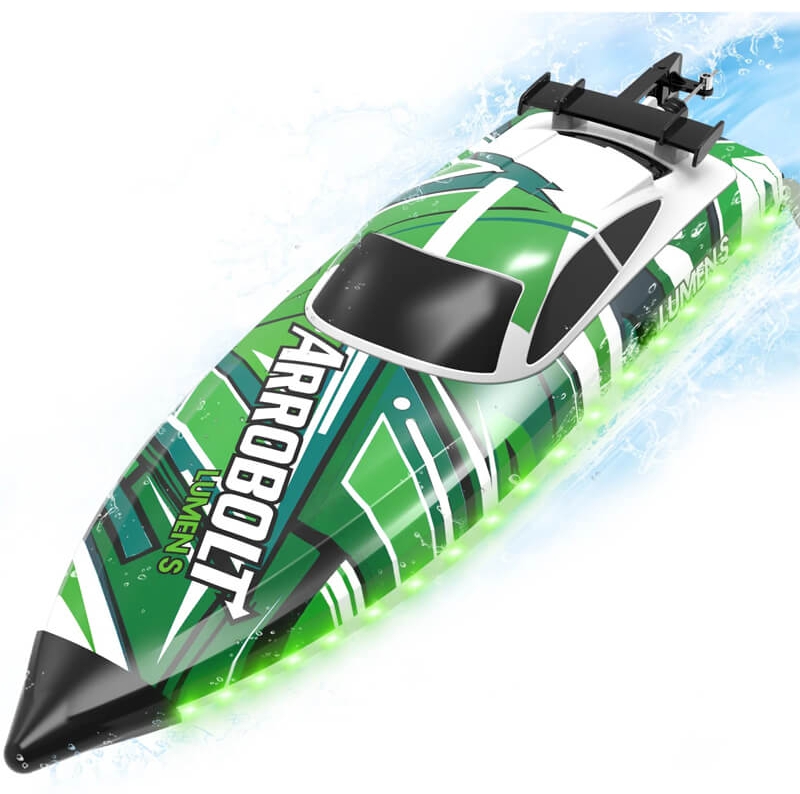 - High Speed RC Boat With Brushless Motor: The water-cooled brushless motor provides more power to the remote controlled boat Arrobolt Lumen S to make waves at 35+MPH and blow other radio controlled boats out of the water! Innovative hull design with low resistance, stable racing and fast speed.