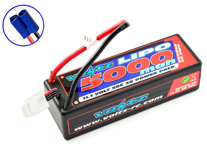 Experience the rugged durability of Voltz RC LiPo power with this 5000mAh 11.1V 50C hard case low profile lithium polymer battery suitable for all radio control vehicles. The hard shell provides extra protection for the battery, allowing the RC car to be driven to its extremes whilst maintaining great power.