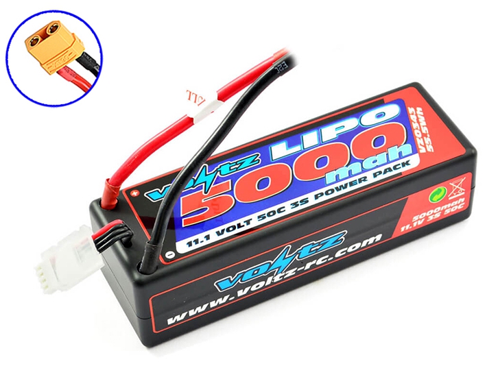 Experience the rugged durability of Voltz RC LiPo power with this 5000mAh 11.1V 50C hard case low profile lithium polymer battery suitable for all radio control vehicles. The hard shell provides extra protection for the battery, allowing the RC car to be driven to its extremes whilst maintaining great power.