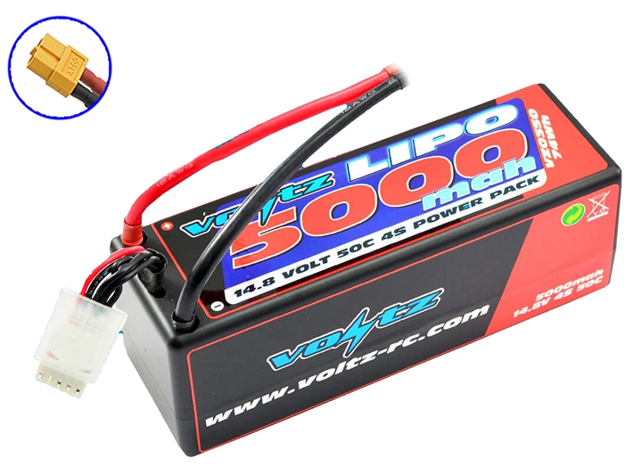 Experience the rugged durability of Voltz RC LiPo power with this 5000mAh 14.8V 50C hard case low profile lithium polymer battery suitable for all radio control vehicles. The hard shell provides extra protection for the battery, allowing the RC car to be driven to its extremes whilst maintaining great power.