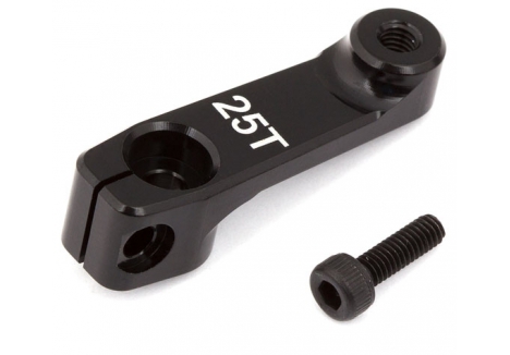 These 7075 T6 aluminum clamping servo horns, for 1:10 scale touring cars, include a large M2.5 screw and laser-etched spline size for positive identification. A length of 20.0mm provides smoother steering response.