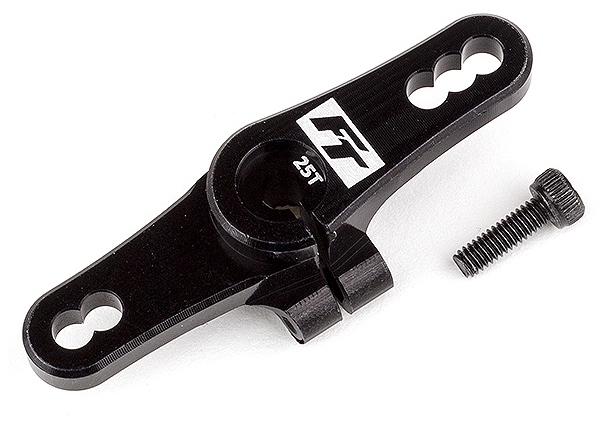 Improve durability and throttle/brake feel with a new Factory Team aluminum clamping throttle servo horn! Machined from high quality 7075 aluminum and laser-etched with Factory Team branding, this aluminum steering servo horn will add peace of mind knowing there will be no DNF caused by breakage, while throttle and brake feel are improved due to the reduced flex. The clamping design also ensures a secure fit to any servo with matching spline count.