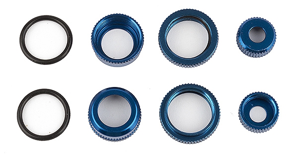 Team Associated TEAM ASSOCIATED REFLEX 14B/14T FT SHOCK CAPS/COLLARS BL. ALUM AS21556