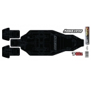 Whether you race indoor or outdoor, protecting your chassis from premature wear will improve its lifespan and help maintain performance. These new Factory Team pre-cut chassis sheets are made from adhesive-backed 18-mil vinyl and offer a protective surface while looking trick with intricate details for that Factory Driver look. Offered for the B6.1/B6.1D, T6.1, and SC6.1, the sheets are printed in gloss black and include two extra tail sections to replace as they wear.
