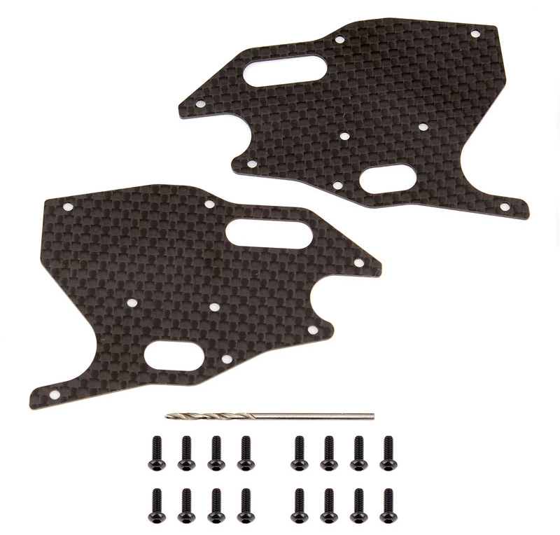 The new Factory Team Graphite Arm Stiffeners increase the rigidity of your RC8B3.1 suspension arms for improved consistency and stability, especially in warm climates. (Rear stiffener plates increase rigidity around the outer hinge pin, a critical area when improving the overall effectiveness of an arm stiffener.) Made from high quality 1.0mm graphite.