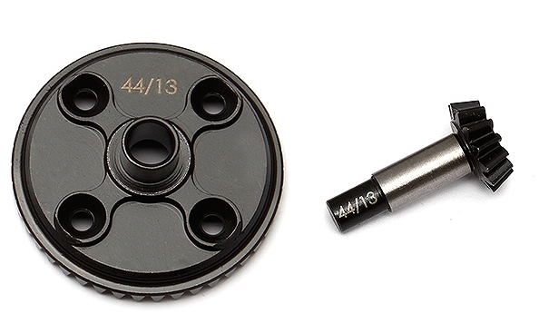 The RC8B3 44T ring gear and 13T pinion gear have returned as a combined packaged to include both gears as a set. Used as a tuning option in RC8B3 V3 differentials, the 44/13 gearing has a lower gear ratio for more top end speed over the 42/12 gear set.