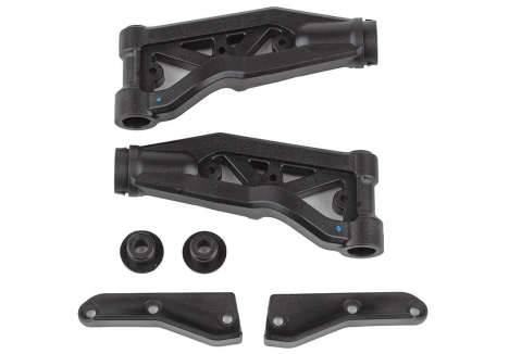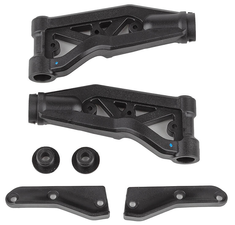 Team Associated developed a new Medium composite arm material for 1:8 off-road racing. Compared to the RC8B4 kit Hard material, the Medium arms have reduced fiber content which offers several improvements. Medium arms are marked with a blue dot on all parts.