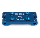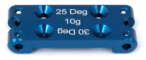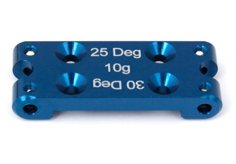 The B6-B6.3 cars feature a chassis kick up of 27.5 degrees, to obtain 25 degrees kick up you need to use the -2.5 DEG position and to obtain 30 degrees kick up you would need to use the +2.5 DEG position