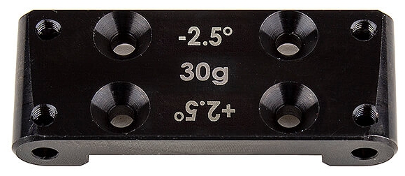 The B6-B6.3 cars feature a chassis kick up of 27.5 degrees, to obtain 25 degrees kick up you need to use the -2.5 DEG position and to obtain 30 degrees kick up you would need to use the +2.5 DEG position