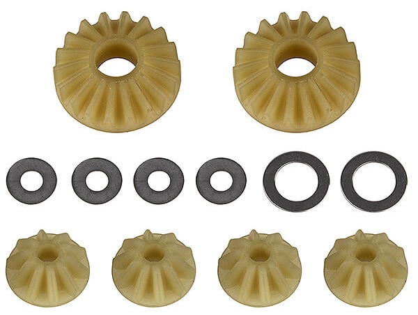 New from Factory Team are LTC (low torque capacity) gear sets for the RC10B74 series buggies. Available in metal and plastic variants, these gear sets increase the drivability and traction of the Team Associated B74. The new design of high tooth count and smaller teeth allows for smoother differential action that won't lock on power. These gear sets come with the gears and shims needed for one differential.