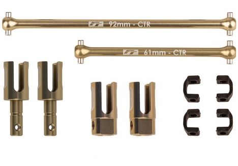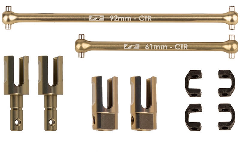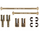 Factory Team is excited to announce the Lightweight Center Driveline kit for the RC10B74 series of vehicles. This driveline kit reduces the rotational mass of the centre driveline by a total of 19.3g over the standard steel parts! Durability and longevity were addressed with the use of plastic blades that act as the contact surface between the dog bone pins and outdrives to reduce wear and tear.