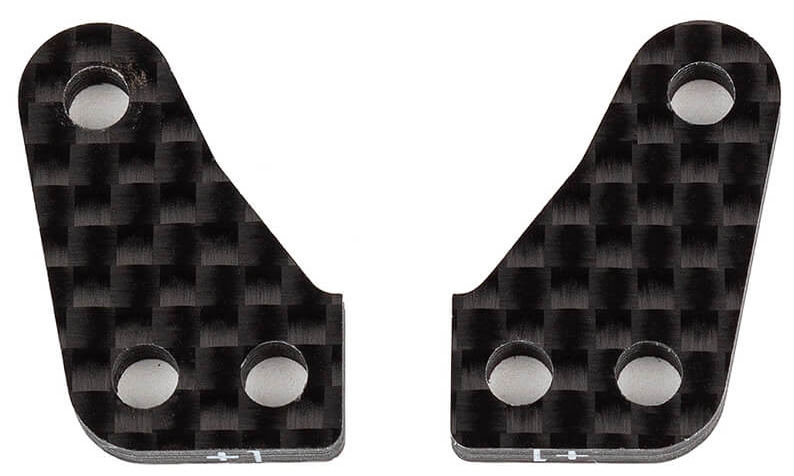 Fine tune the steering feel of your RC10B74.2 or B74.2D 4WD buggy with these two new steering block arm options from Factory Team. The AS92376 steering arms will have the smoothest and least aggressive feel while AS92375 will be a good middle ground between the AS92376 above and the kit steering arms AS92272. Both options come in a set of two and are well marked with a screen-printed text.