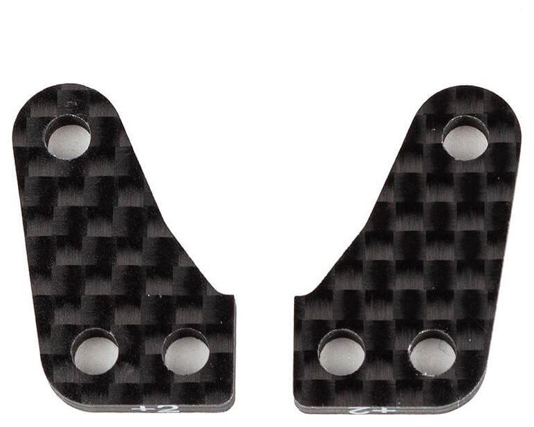 Fine tune the steering feel of your RC10B74.2 or B74.2D 4WD buggy with these two new steering block arm options from Factory Team. The AS92376 steering arms will have the smoothest and least aggressive feel while AS92375 will be a good middle ground between the AS92376 above and the kit steering arms AS92272. Both options come in a set of two and are well marked with a screen-printed text.