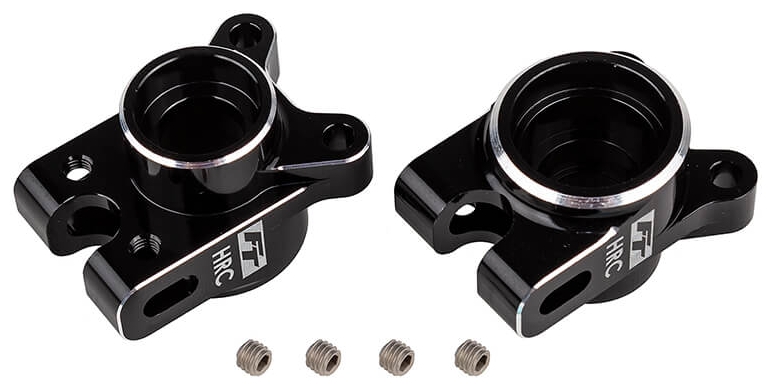 Associated Electrics announces new Factory Team aluminum hubs for the RC10B7. These hubs are a more durable alternative to the molded hubs and provide more unsprung weight, which can be used as a tuning option. The HRC (High Roll Center) hubs include the secondary bearing bore for the upcoming FT Universals. The HRC hubs allow for higher axle heights, which is great when running on high grip surfaces with smaller diameter tyres and lower ride heights.
