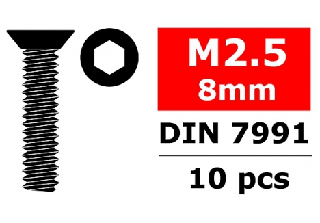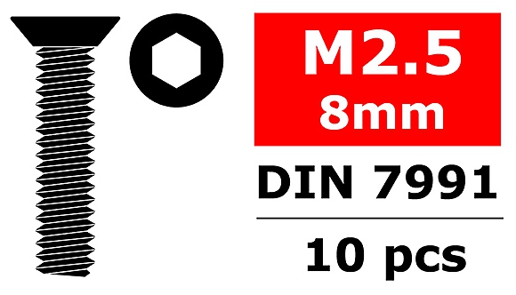 Corally CORALLY STEEL SCREWS M2. 5 X 8MM HEX FLAT HEAD 10 PCS C-3002-25-08