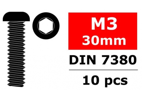 Corally TEAM CORALLY HEX BUTTON HEAD SCREW M3X30 STEEL 10 PCS C-3003-30-30